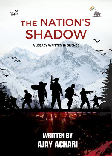 The Nation’s Shadow is a powerful historical war fiction that uncovers the untold emotions of those who stand guard while the world sleeps. Set against the backdrop of Siachen, Kargil, and the rugged terrains of the north, this novel brings to life the courage, loyalty, and sacrifices of soldiers and their families.