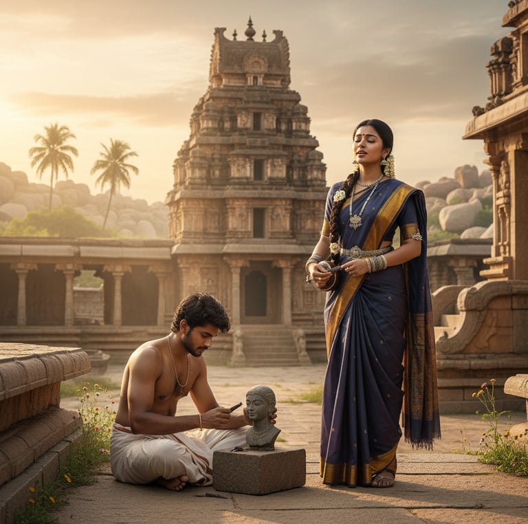 The hero is Chitraveer Keshava, a gifted sculptor. His hands bring stone to life, creating stunning carvings with devotion and skill.